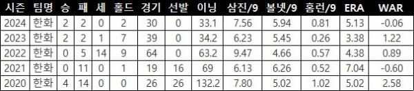 LG 장시환의 주요 투구기록(출처:야구기록실 kbreport)