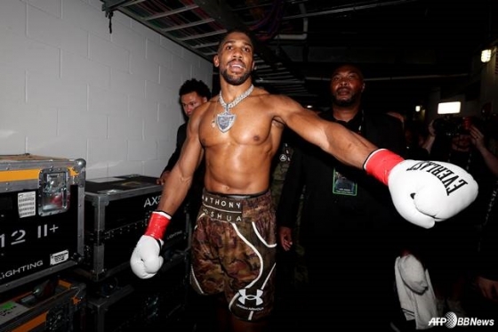 앤서니 조슈아가 20일(한국시간) 미국 마이애미 카세야 센터에서 열린 프로복싱 헤비급 3분 8라운드 경기를 위해 링으로 향하고 있다. /AFPBBNews=뉴스1