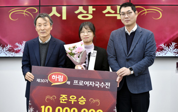 시상식에는 대회를 후원한 (주)하림지주의 문경민 전무, 주관사 한국기원의 양재호 사무총장과 한종진 기사회장 등이 참석해 우승자 김은지 9단과 준우승자 최정 9단을 시상하고 축하했다.
