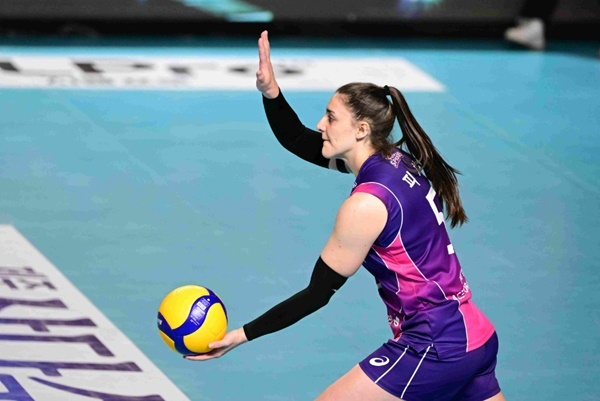 ▲ 피치는 기업은행전에서 서브득점 3개와 블로킹 5개로 14득점을 올리며 홈팬들에게 크리스마스 선물을 안겼다. |
