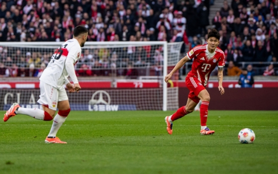 김민재(오른쪽)가 6일(한국시간) 독일 슈투트가르트의 MHP아레나에서 열린 2025~2026시즌 독일 분데스리가 13라운드 경기 중 공을 바라보고 있다. /사진=바이에른 뮌헨 공식 사회관계망서비스(SNS)