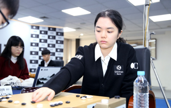 ▲ 와일드카드를 받은 스미레 4단(오른쪽). 옛 일본기원 동료 쉬자위안 9단을 만나 완승 흐름을 이끌었다. 277수 불계승.