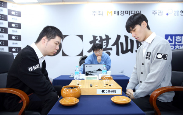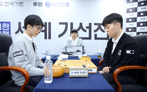 ▲ 신진서 9단(왼쪽)이 리쉬안하오 9단과의 지난 5차례 대결에서 '승패승패승'으로 이어온 패턴을 첫 연승으로 바꿨다. 6판은 모두 백불계승. 자국 랭킹은 신진서가 72개월 연속 1위, 1위까지 오른 바 있는 리쉬안하오는 현재 9위.