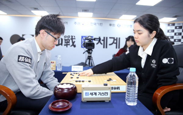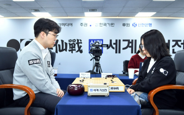 ▲ 돌가리기 결과 서로 다른 색깔의 유니폼을 입고 대국을 벌인다.