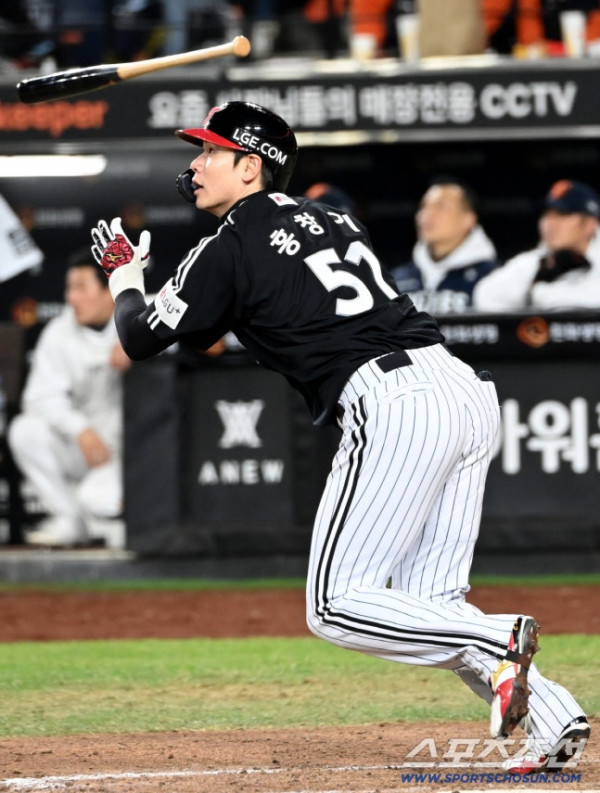 30일 대전 한화생명볼파크에서 열린 한국시리즈 4차전 한화 이글스와 LG 트윈스의 경기. 9회초 무사 1루 LG 박동원이 투런포를 날리고 있다. 대전=박재만 기자 [email protected]/2025.10.30/