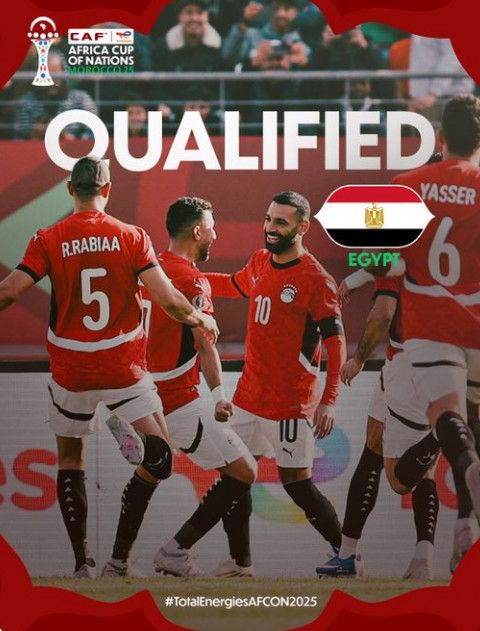 모하메드 살라(10번)가 골을 넣고 동료들과 기뻐하고 있다. /사진=2025 아프리카 네이션스컵 공식 SNS 갈무리