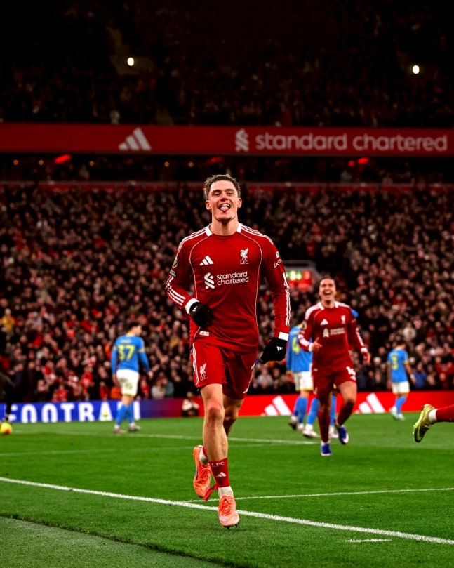 리버풀 플로리안 비르츠가 28일(한국시간) 영국 리버풀의 안필드에서 열린 울버햄프턴과의 2025~2026 잉글랜드 프리미어리그(EPL) 18라운드 득점 이후 골 세리머니를 하고 있다. /사진=리버풀 SNS 캡처
