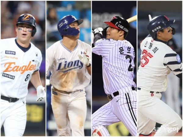 한화 노시환, 삼성 김영웅, LG 문보경, 롯데 한동희(왼쪽부터). 스포츠동아DB·한화 이글스·삼성 라이온즈·롯데 자이언츠 제공
