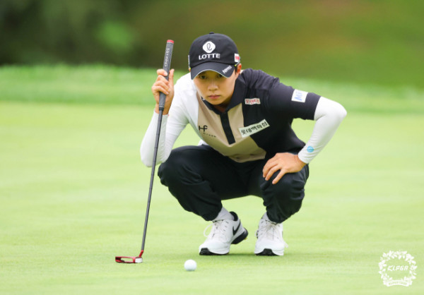 그린 경사를 읽고 있는 윤이나. 사진 제공=KLPGA