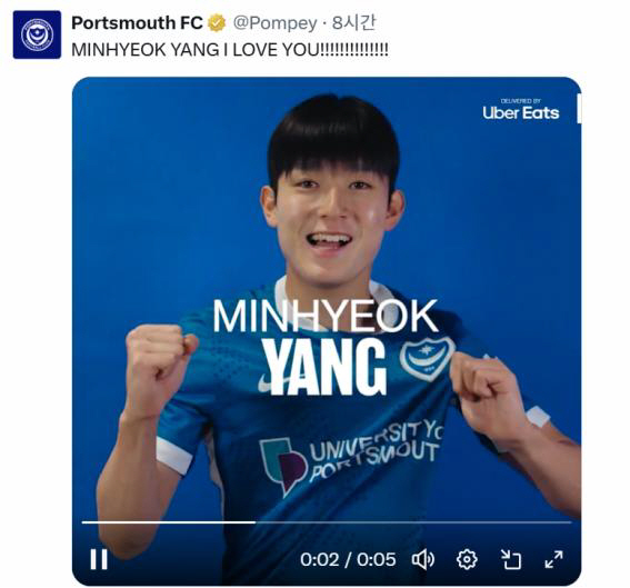 구단 SNS도 결승골이 터진 후 기쁨을 감추지 못했다. 포츠머스 계정은 무작위로 타이핑한 알파벳들과 함께 '맙소사'라는 문구를 올렸다. 이어 '사랑합니다. 양민혁'이라는 게시글을 업로드했다.