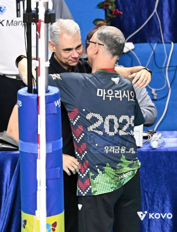 나란히 지휘봉을 내려 놓은 KB손해보험 카르발류 감독(사진 왼쪽)과 우리카드 마우리시오 파에스 감독. ⓒ 한국배구연맹