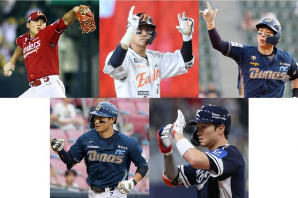 프로야구 말띠 선수들. 왼쪽 위부터 시계방향으로 조병현(SSG 랜더스), 채은성(한화 이글스), 박건우(NC 다이노스), 박해민(LG 트윈스), 김주원(NC 다이노스)이다. 뉴시스