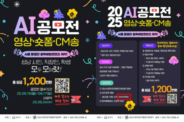 성남시 산하 성남시중독관리통합지원센터는 6월16일부터 8월17일까지 '2025 AI공모전: AI를 활용한 중독 예방 콘텐츠 제작 공모전'을 개최하며, 예방 대상 중독물질로 알코올·약물·도박과 함께 인터넷게임을 명시했다. 공모 주제가 공개되자 게임을 중독물질로 규정한다는 비판의 목소리가 높아졌고, 게임업계의 반응도 싸늘했다. 성남시는 판교를 중심으로 국내 주요 게임사가 밀집한 지역으로, 과거 '지스타' 유치전에 나서는 등 게임산업 육성에 적극적인 모습을 보여왔다. 이런 배경에도 불구하고 이번 공모전이 스스로 '게임 친화 도시' 이미지를 훼손했다는 비판이 뒤따랐다.