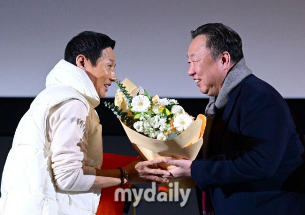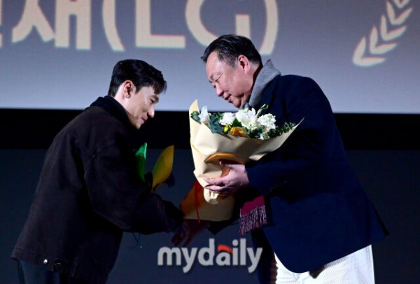 2025년 12월 4일 오후 서울 영등포 타임스퀘어 CGV 영등포 스크린X관에서 ‘제39회 스포츠서울 올해의 상’이 열렸다. LG 염경엽 감독이 차명석 단장의 축하를 받으며 올해의 감독상을 수상하고 있다./마이데일리