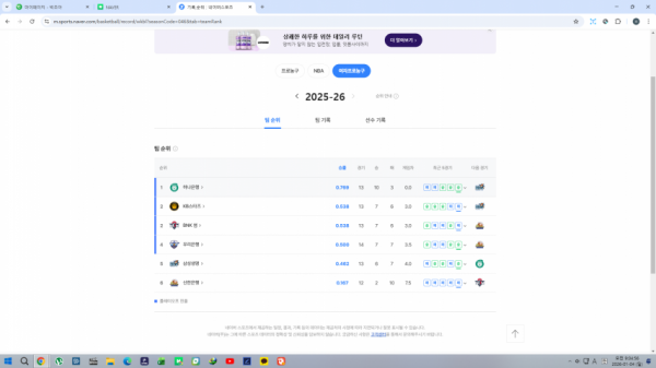 케이비가 예상보다 약팀으로 승차+1 유지