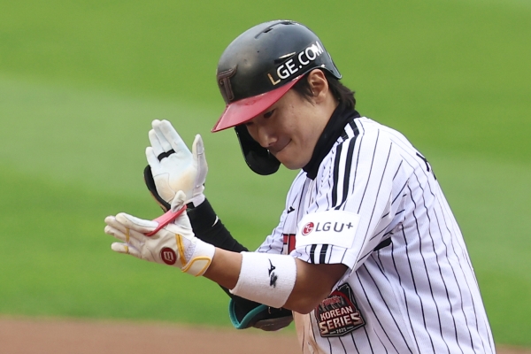 '공격과 수비에서 모두 빛났다' 신민재, LG 한국시리즈 1차전 승리의 주역