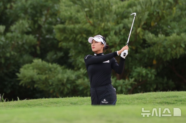 [해남=뉴시스] 권창회 기자 = 18일 오전 전남 해남 파인비치 골프링크스에서 열린 BMW 레이디스 챔피언십 2025 3라운드에서 윤이나가 9번 홀 벙커샷을 치고 있다. 2025.10.18. [email protected]