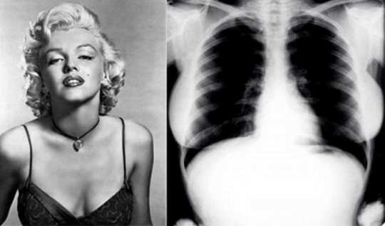 1954년에 촬영된 마릴린 먼로의 엑스레이 사진입니다. 이후 라스베이거스 경매에서 4만 5천 달러에 판매되었습니다.