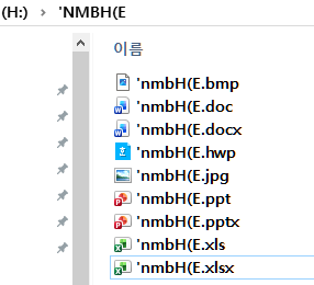 그 폴더 내부에는 해당 폴더와 동일한 이름의 각종 문서/오피스/BMP 파일이 있습니다.
