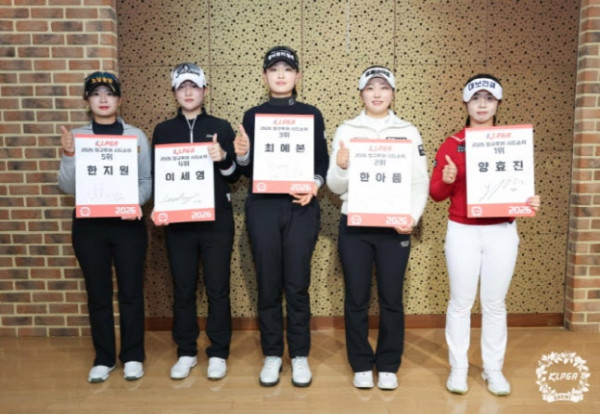 시드순위전 상위 5명. 왼쪽부터 한지원, 이세영, 최예본, 한아름, 양효진.(사진=KLPGT 제공)