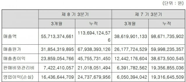 미디어앤아트도 3분기 매출 44.5억 원, 영업이익 17.3억 원을 기록하며 지속 성장에 일조했다.