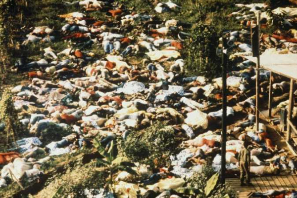 존스타운은 1974년부터 1978년까지 가이아나에 존재했던 종교 집단 '인민의 성전'의 이념 공동체입니다. 그 이름은 지도자이자 창립자인 짐 존스를 따서 지어졌습니다.1978년 11월 18일, 공동체 지도자 짐 존스의 부름에 따라 이곳에서 918명이 집단 자살을 했습니다. 사진에는 사람들의 시신이 찍혀 있습니다.