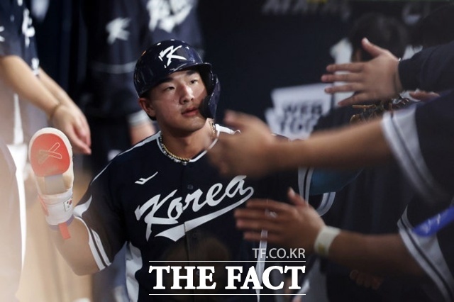 한국 대표팀의 새로운 해결사로 주목받고 있는 안현민은 15일 일본전에서 선제 2점 홈런을 날려 존재감을 확인했다. /뉴시스