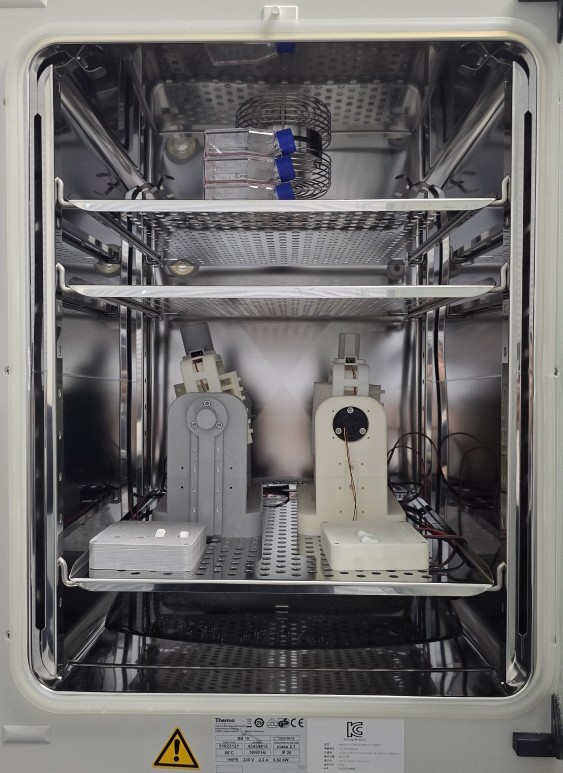 지상에서는 무중력 환경을 흉내내는 장치인 ‘클리노스탯’을 이용한 실험이 진행 중이다. 클리노스탯은 3차원으로 끊임없이 회전하며 중력 영향을 분산시켜 미세중력 환경을 재현한다. 지상에서 세포를 키우는 것보다 우주에서 세포를 키우는 것이 더욱 효과적이라는 것을 지상에서 입증해나가는 과정이다.