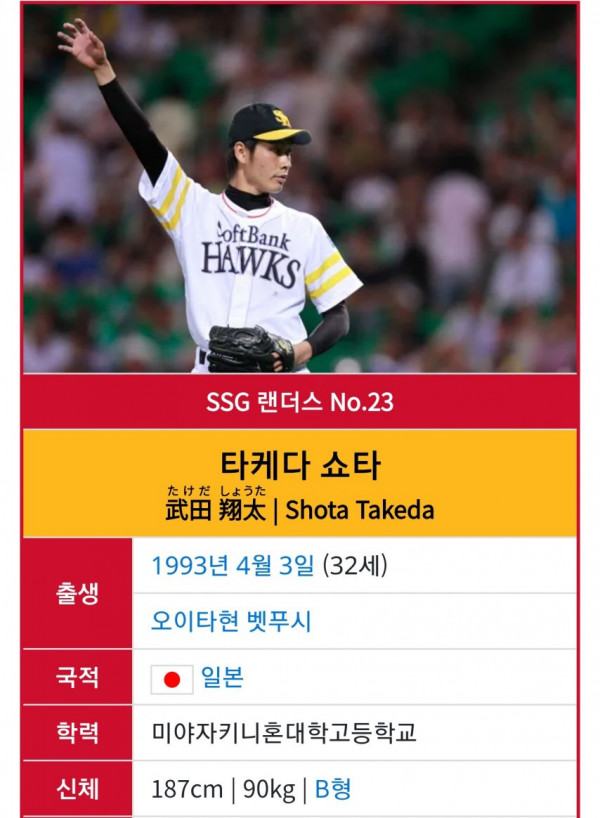 12년도 일본 프로야구 신인 드래프트 1라운드에서 소프트뱅크에 지명된 유망주였죠