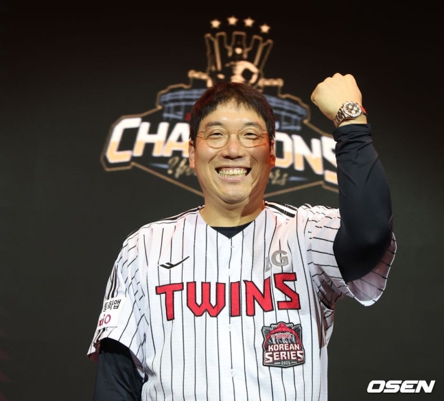 [OSEN=대전, 손용호 기자] 프로야구 LG 트윈스는 31일 대전 한화생명볼파크에서 열린 2025 신한 SOL뱅크 KBO 한국시리즈(7전 4선승제) 한화 이글스와의 5차전에서 4-1로 승리했다. 정규시즌 1위 LG는 시리즈 전적 4승 1패로 통합우승 금자탑을 쌓았다. LG의 통합우승은 1990년, 1994년, 2023년에 이은 통산 4번째로, 염경엽 감독은 2023년 부임 후 3년 사이 팀을 두 차례나 정상에 올려놓는 위대한 업적을 달성했다. LG 김현수가 한국시리즈 MVP로 선정돼 기뻐하고 있다. 2025.10.31 /[email protected]