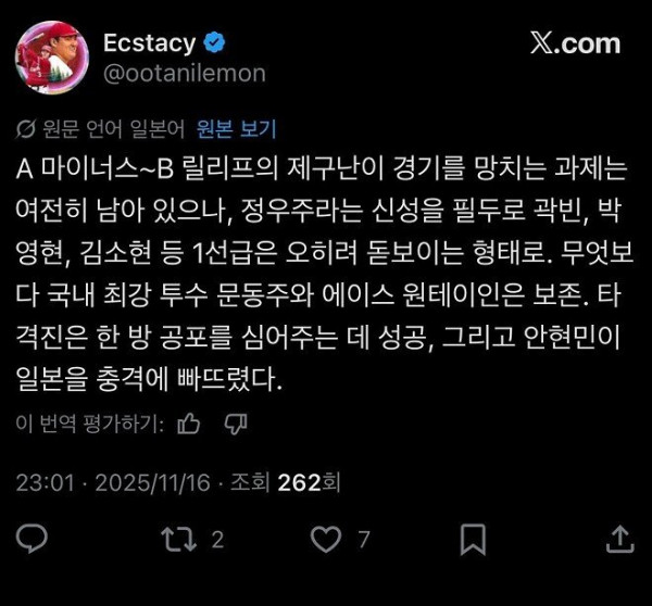 한일 평가전 2연전 본 일본 야구팬의 한국 대표팀 평가 SNS.jpg