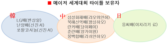 올 들어 메이저 무대의 주도권이 중국으로 넘어가고 있는 모습이다. 한국은 LG배(변상일), 난양배(신진서), 쏘팔코사놀배(신진서)를 우승했다. 중국은 북해신역배(왕싱하오), 춘란배(양카이원), 란커배(당이페이), 삼성화재배(랴오위안허)를 우승했다.