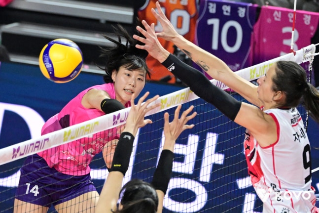 공격하는 흥국생명 정윤주.제공 | 한국배구연맹 |